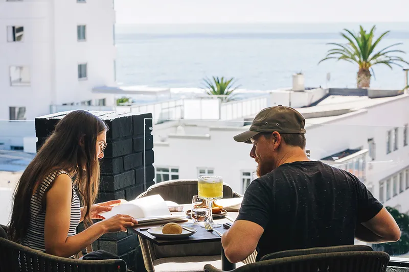 After an afternoon immersed in art and culture, we headed to Zest for dinner, an opulent setting in Sea Point. The chic restaurant welcomed us with its modern interior, where soft ambient lighting cast a warm glow across the room. Polished wooden tables, and woven dried grass light fixtures created an atmosphere of understated luxury combining a sleek, minimalist design with natural elements that added a rustic charm. The glass-encased verandah seamlessly connected the indoors to the outdoors, offering unobstructed ocean views. We took outdoor seats to where the sounds
