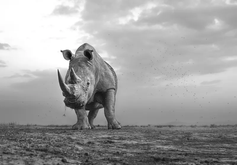 Mfalme resides in a highly secure and private sanctuary in the Central Province of Kenya. Spanning over 20,000 acres, this reserve is home to hundreds of black and white rhinos, with whom he shares his habitat. Solio Game Reserve, established in 1970, stands as one of the earliest privately-owned rhino sanctuaries, and it boasts the world’s most extensive population of rhinos within a single conservancy. Remarkably, this population continues to thrive and expand with time.