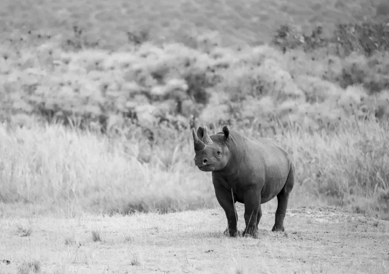 The Black rhino is characterised by having more aggressive behaviour and is currently classified as critically endangered, with only around 6,000 individuals remaining. The White rhino is the second-largest land mammal (after the African elephant) and is the most populous among all rhino species, with an estimated population of 16,000 (down from around 18,000 in 2017), and is considered near threatened by the IUCN. Approximately 80% of the global population of black and white rhinos reside in various national parks in South Africa.