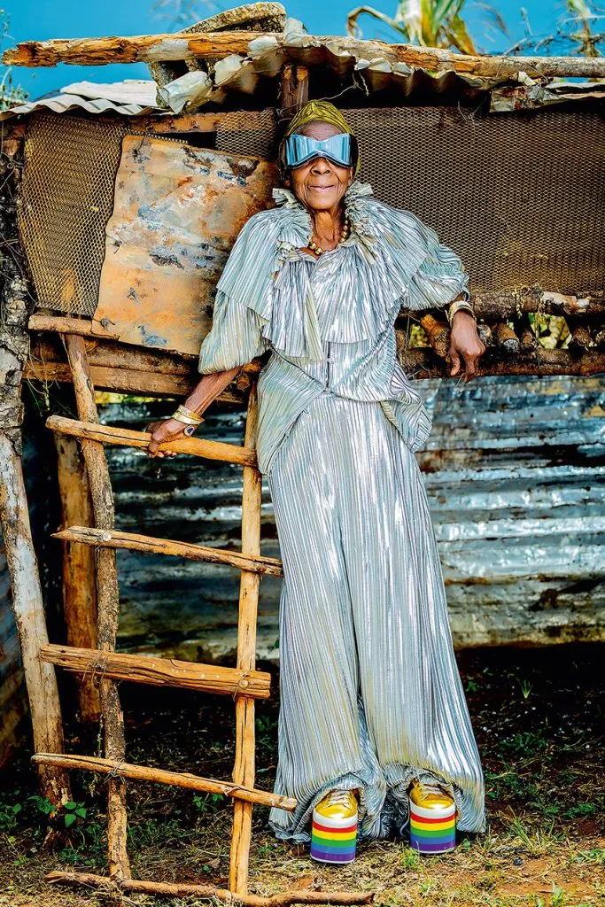 Dee is keeping the tradition alive in her own way. By styling her grandmother, she reasserts the unpredictability her work embodies. In a society that perpetuates near-impossible beauty standards, Dee and Margaret defy stereotypes by consistently creating looks that challenge notions of what is beautiful. Set against the humble backdrops of typical Zambian farms and peri-urban homesteads, Dee draws from her roots to send a powerful statement. By deliberately wielding the contrast of avant-garde, high-fashion against familiar Zambian settings, she mocks the impoverished images of Africa perpetuated by global media and asserting that life does not stop at any age.